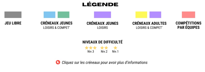 Les horaires ci-dessous concernent les périodes scolaires (les plannings sont modifiés pendant les vacances scolaires).