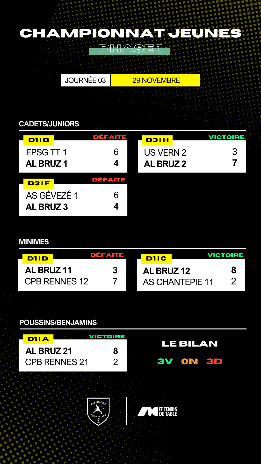 Un bilan sportif à l'équilibre pour la 3ème Journée !
