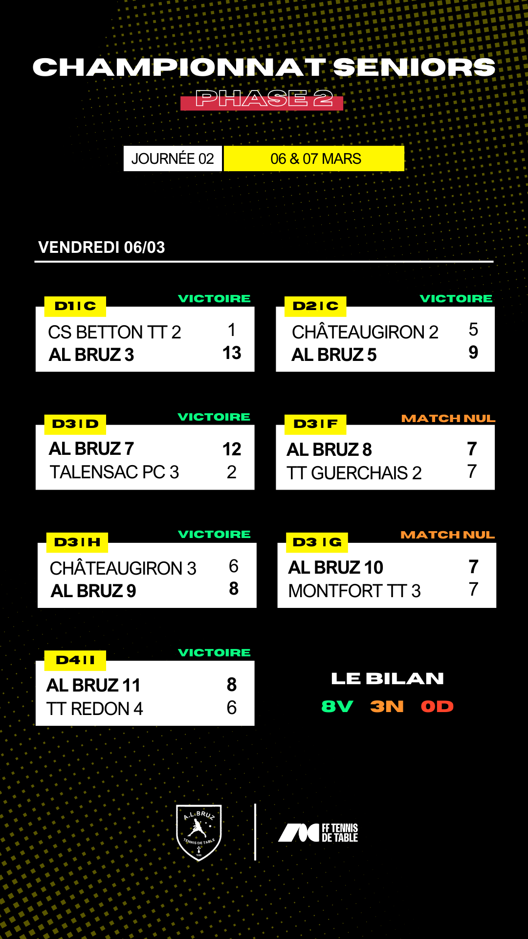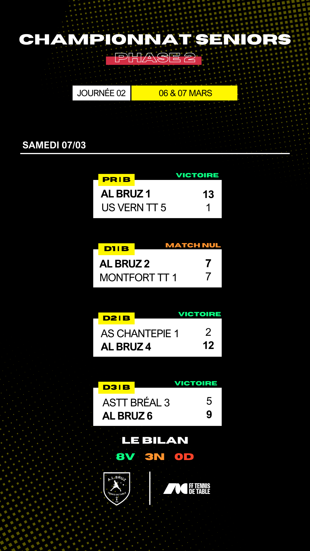 La 2ème Journée du Championnat par Équipes Seniors c'était ce week-end. Faisons un point rapide sur les résultats de nos équipes et le bilan sportif global ! (8V ✅ - 3N ➖ - 0D ❌)