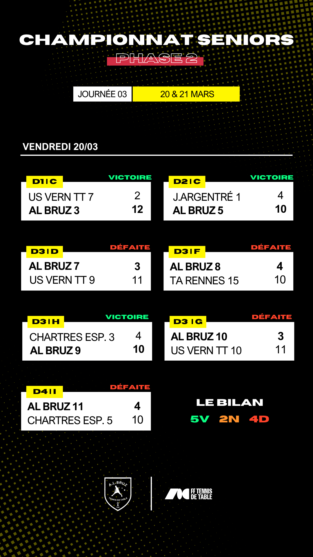 La 3ème Journée du Championnat par Équipes Seniors c'était ce week-end. Faisons un point rapide sur les résultats de nos équipes et le bilan sportif global ! (5V ✅ - 2N ➖ - 4D ❌)