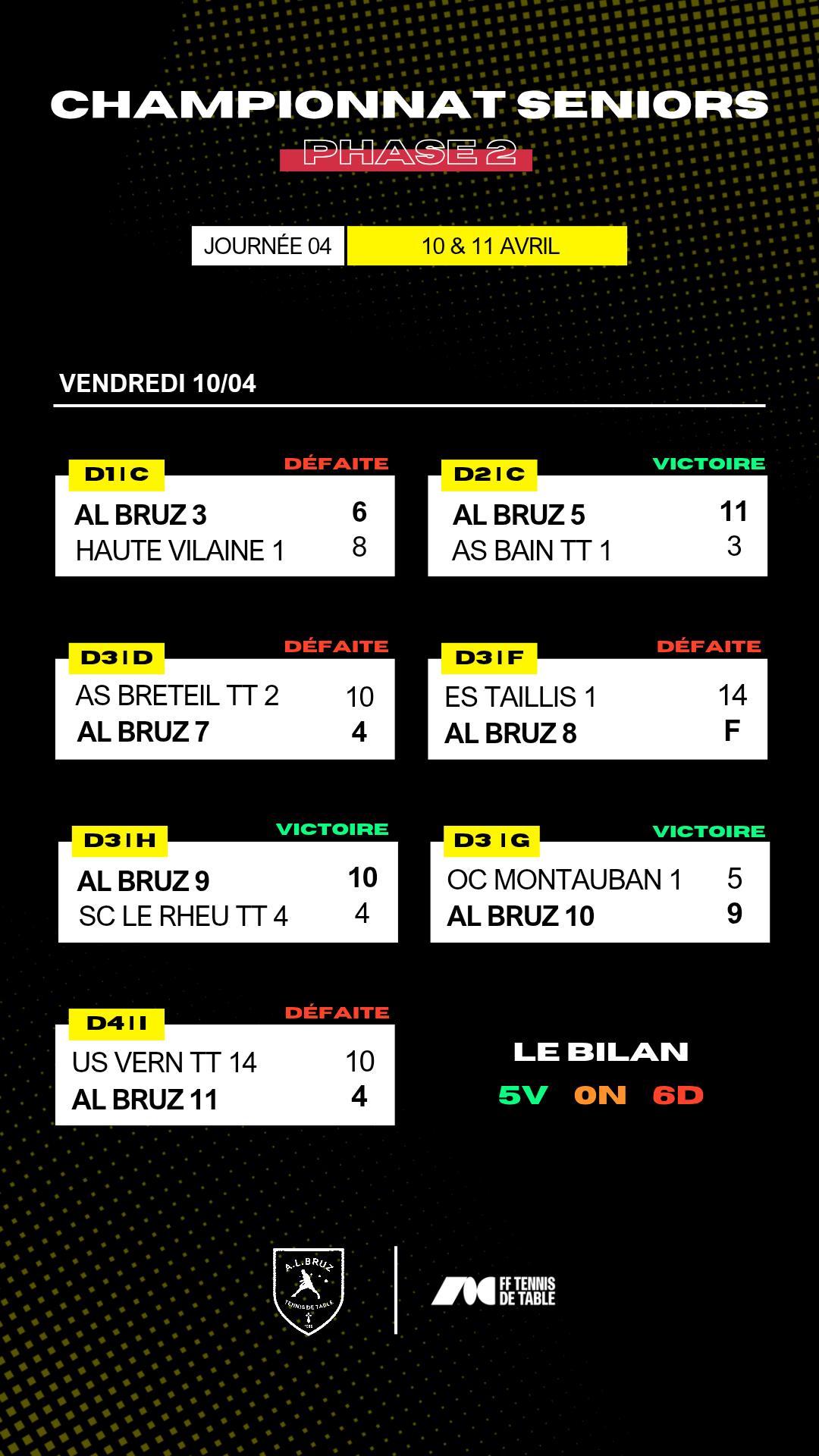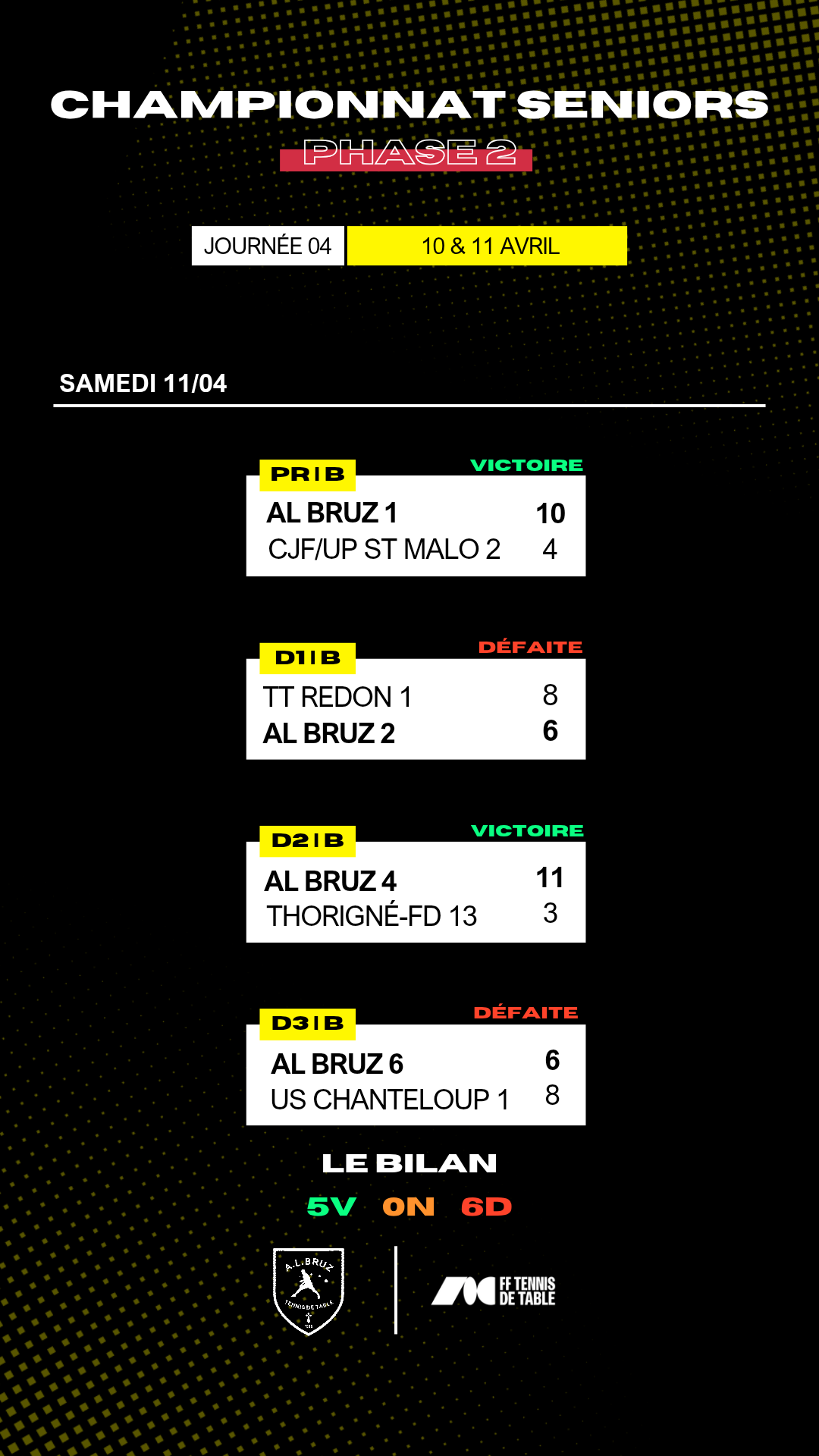 Pour le compte de la 4ème Journée, nos équipes seniors signent un bilan sportif suivant | 5 Victoires ✅ - 0 Match Nul ➖ et 6 Défaites ❌