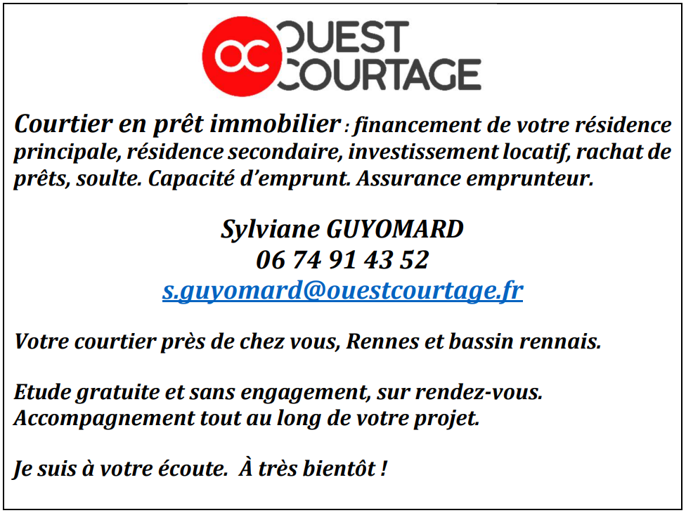 Avec leur expérience et leur réseau de partenaires, ils savent trouver des solutions sur mesure. Transparence, disponibilité et proximité sont au cœur de leur démarche, alors si vous recherchez un courtier près de chez vous et sur le bassin rennais n'hésitez pas à faire appel à Sylviane GUYOMARD !