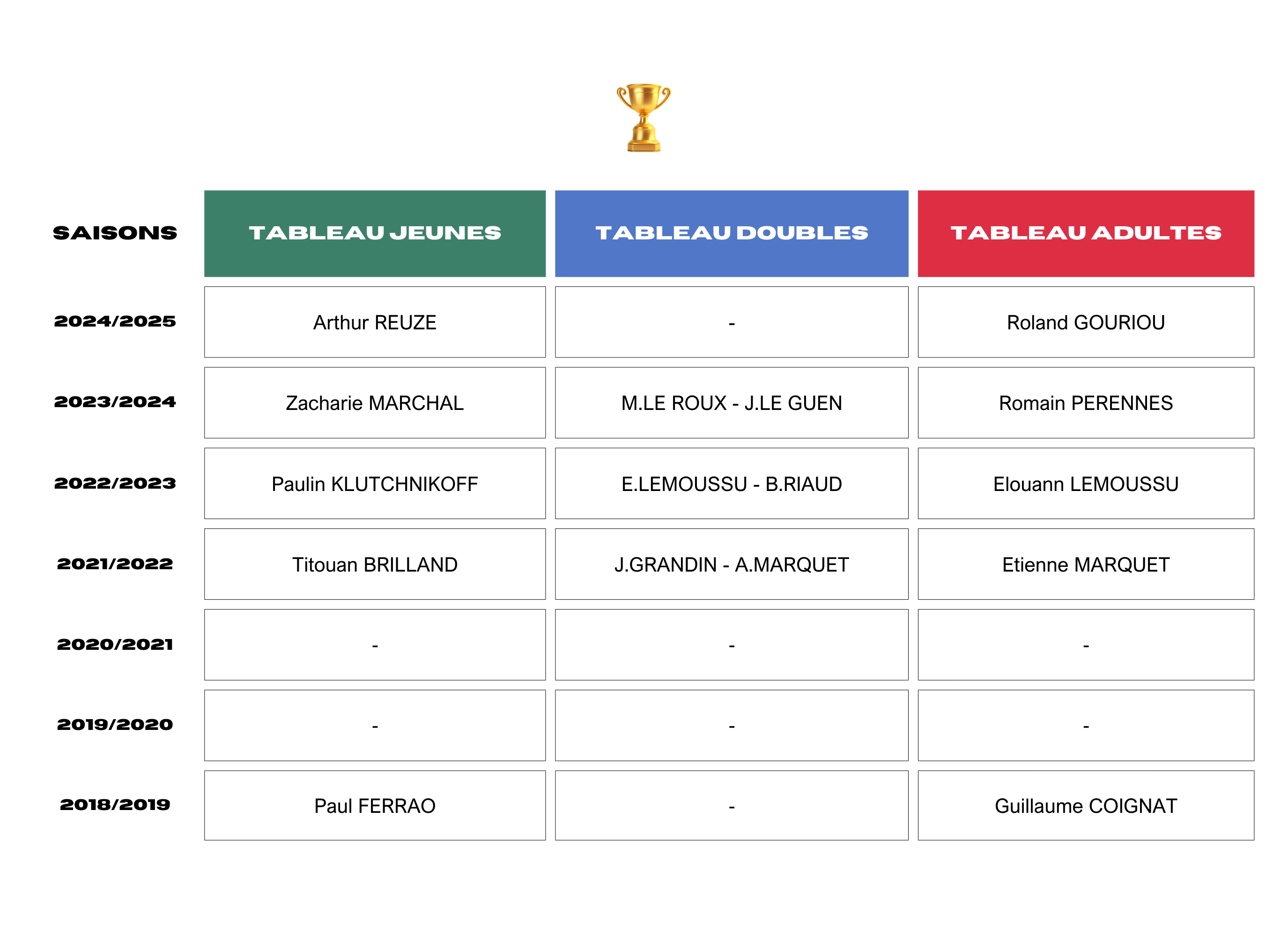 Retrouvez tous les résultats du tournoi annuel de fin d'année du club